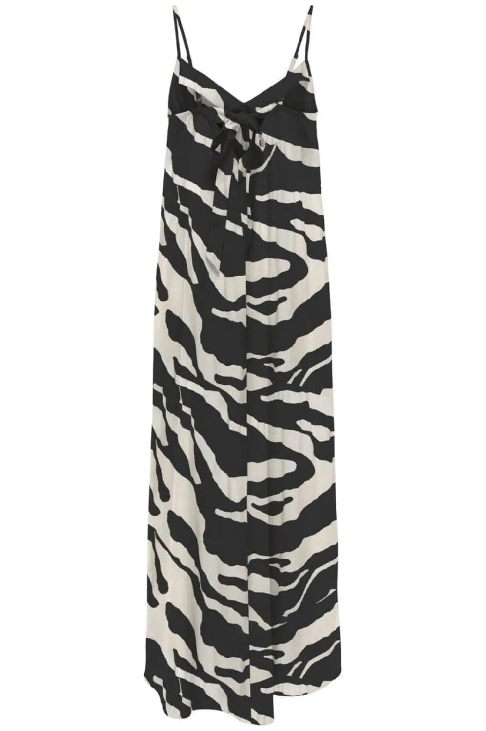 Lang kjole fra Only med sort og hvidt zebraprint. Kjolen har tynde stropper og V-halsudskæring med bindebånd. Den er syet i vævet materiale med regular fit.