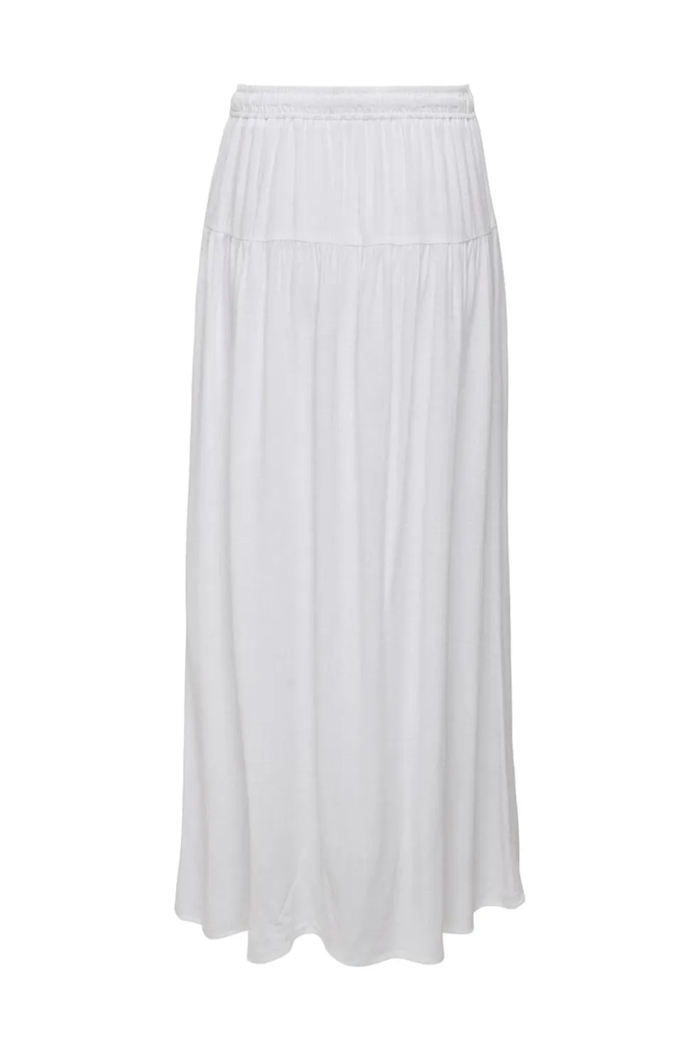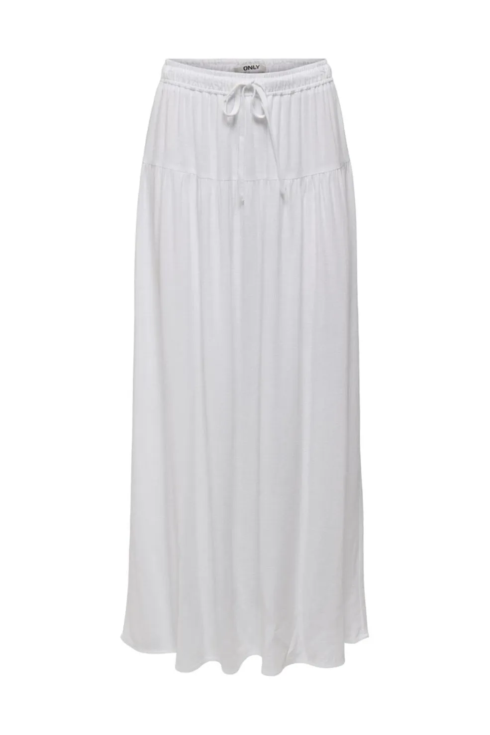 Hvid lang nederdel fra Only med et flydende design. Den er lavet i et let og luftigt materiale med en behagelig elastisk talje og snøredetalje.