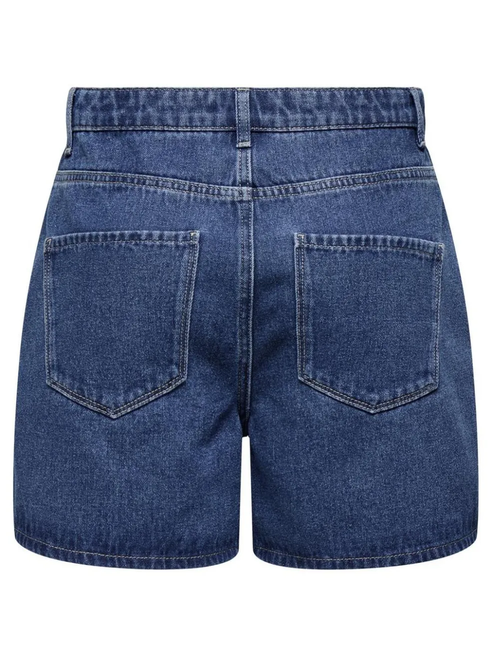 Denimshorts fra Only i mellemblå. De har høj talje og en loose fit med mom-silhuet. Shortsene kommer med bæltestropper samt knap- og lynlåslukning.