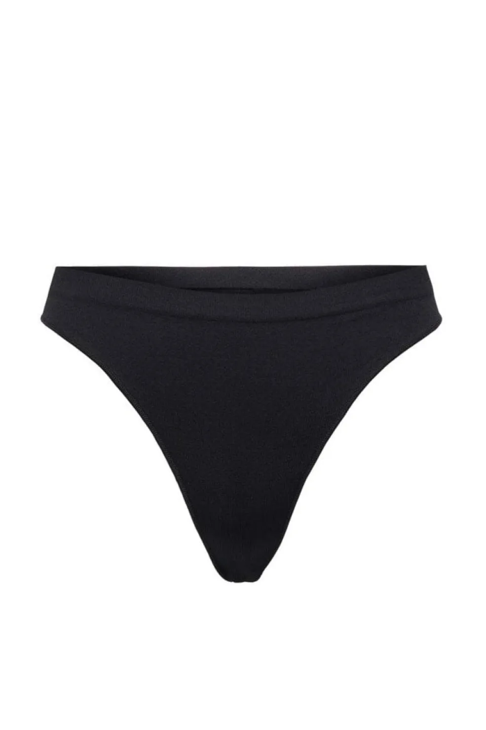 Sort thong fra Only med ribbet struktur og sømløs konstruktion. Den høje talje og det figurformende design giver en glat silhuet under tøjet.