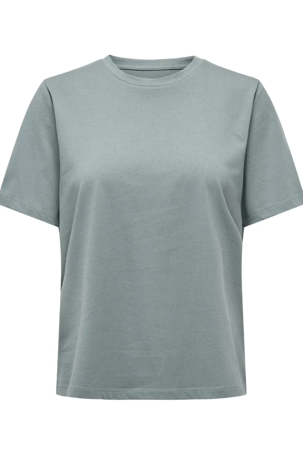 T-shirt fra Only i balsamgrøn. En enkel basis-T-shirt med rund hals og korte ærmer, der er lavet i ren bomuld med en regular fit-pasform.