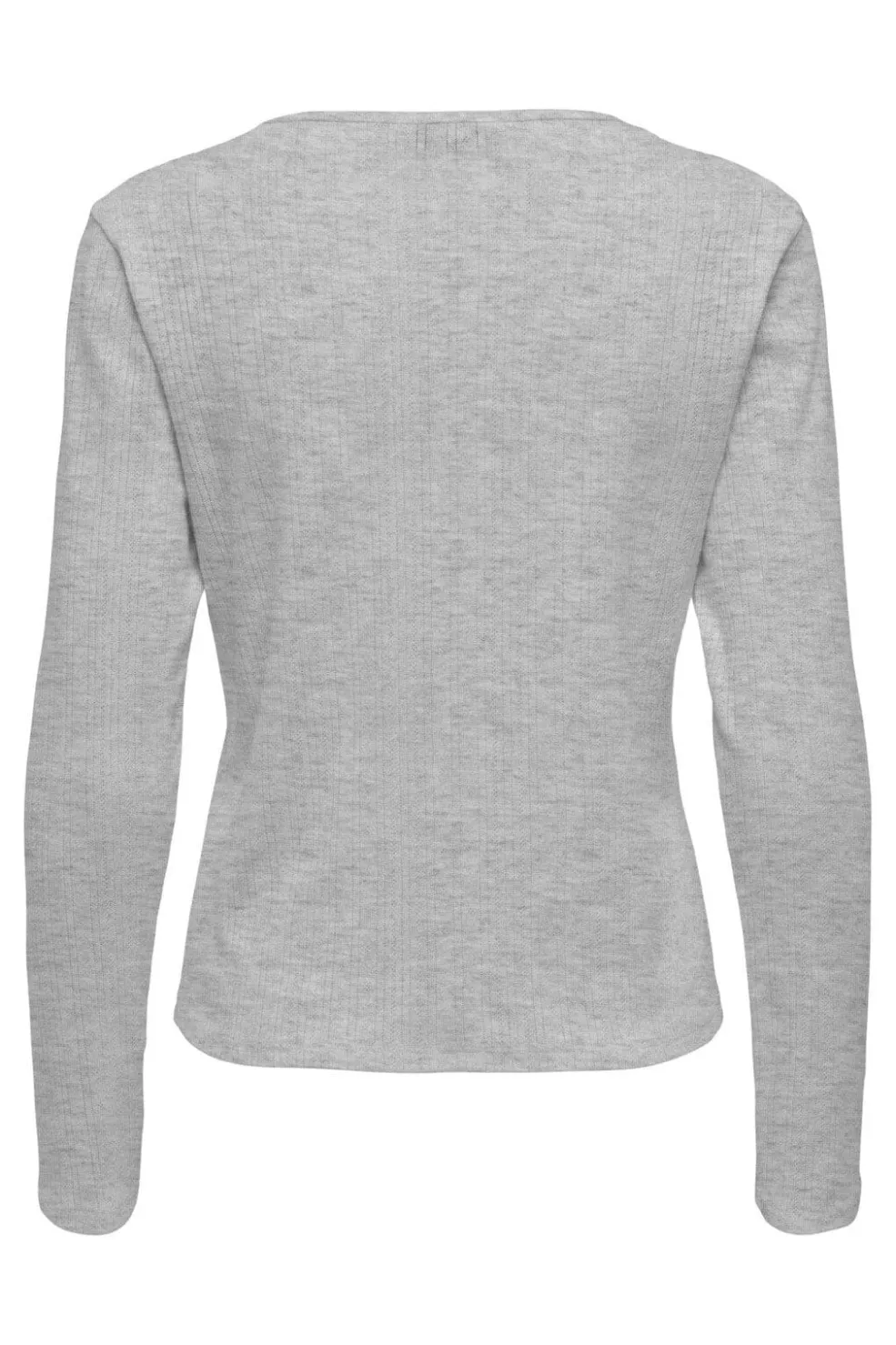 Langærmet top fra Only i lys grå melange. Toppen er lavet af 100% bomuld og har en O-hals med regular fit pasform.