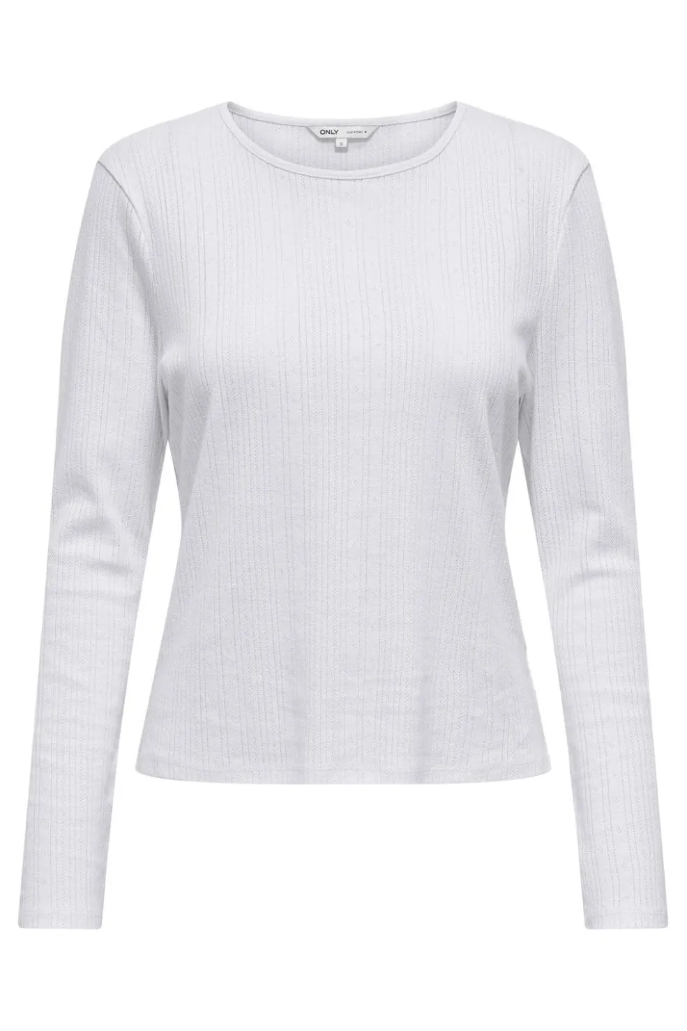 Hvid langærmet top fra Only med rund halsudskæring. Toppen har en struktureret overflade med lodrette linjer og en regular fit, der giver god bevægelsesfrihed.