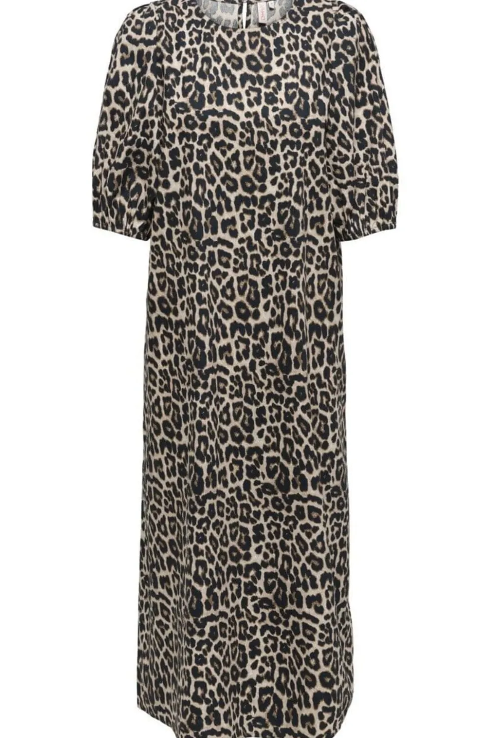 Midi-kjole fra Only i sort og beige leopardmønster. Kjolen har puffede ærmer og en O-halsudskæring. Den er syet i bomuldsstof med en regular fit-pasform.