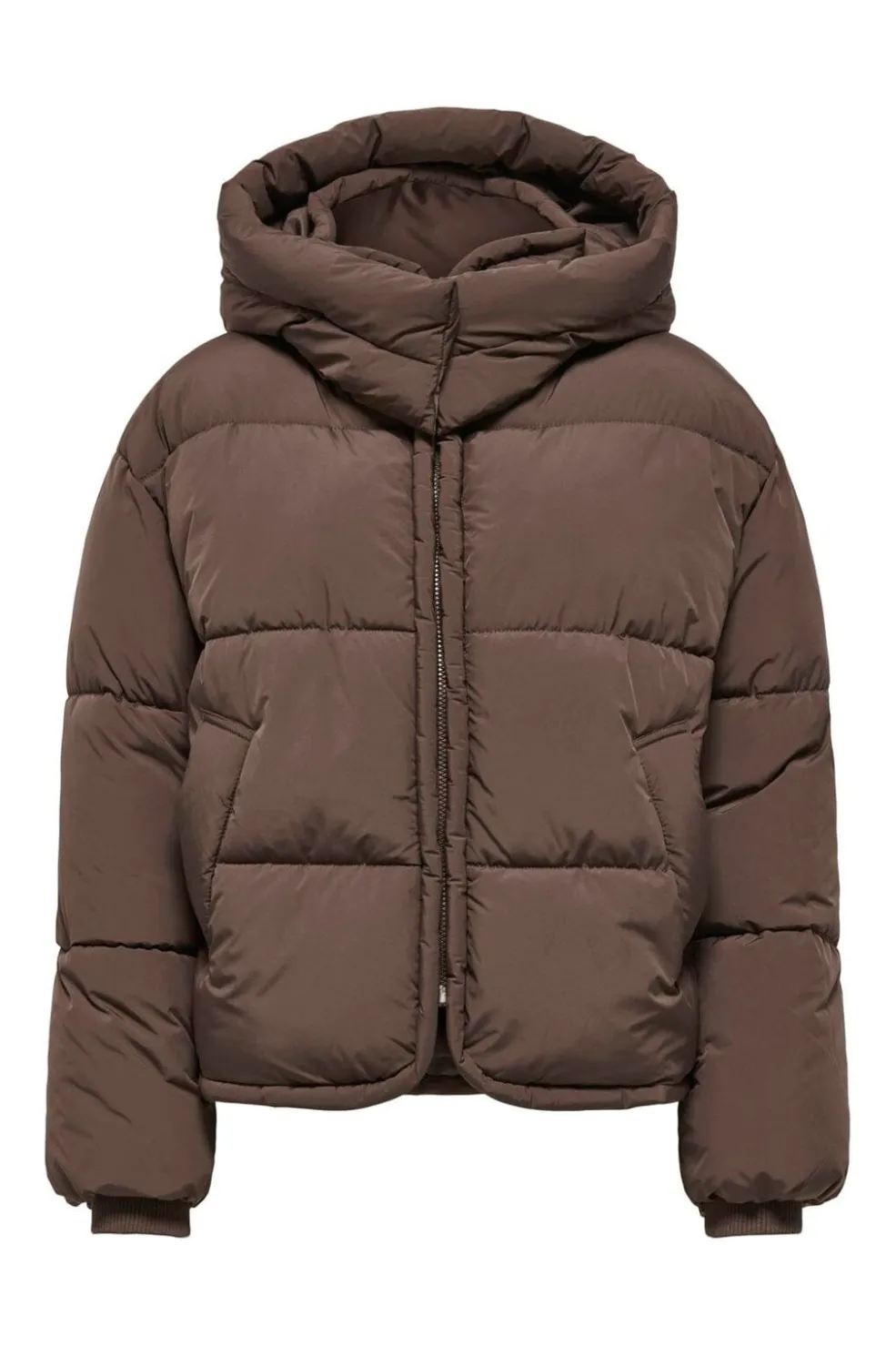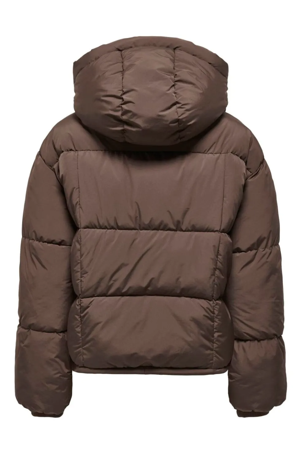En brun dynejakke fra Only, lavet af 100 % polyester. Jakken har en hætte og kommer i nuancen Chocolate Martini.