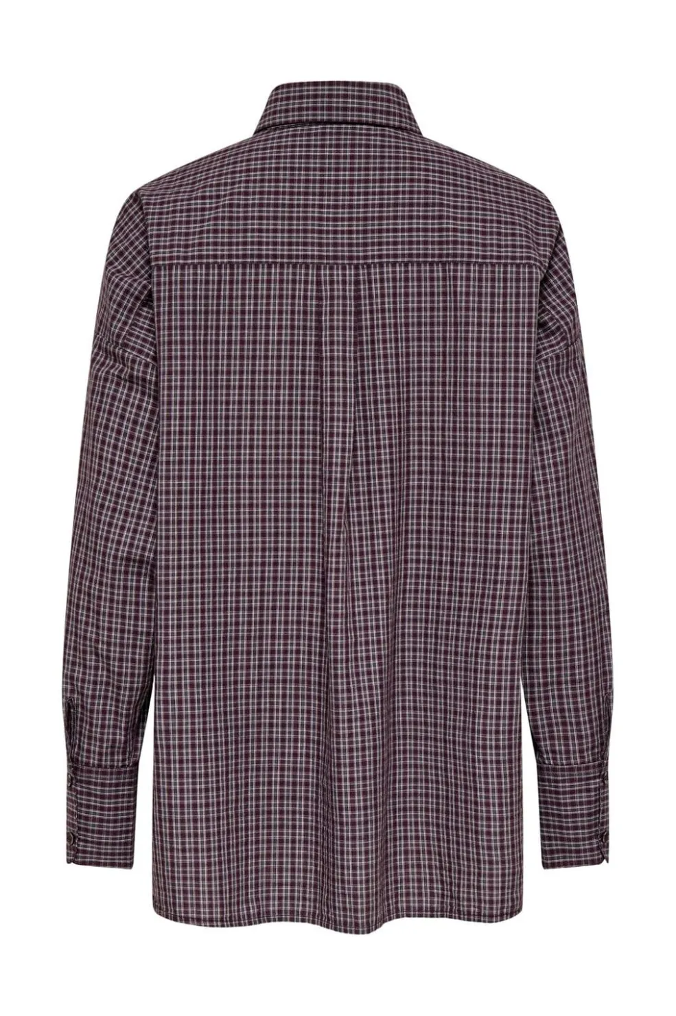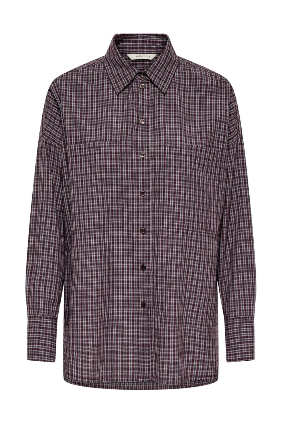 Ternet skjorte fra Only i vinrød og grå. Lavet af bomuld med en oversize pasform og klassisk skjortekrave. Brystlommerne og knapperne foran giver skjorten et praktisk design.