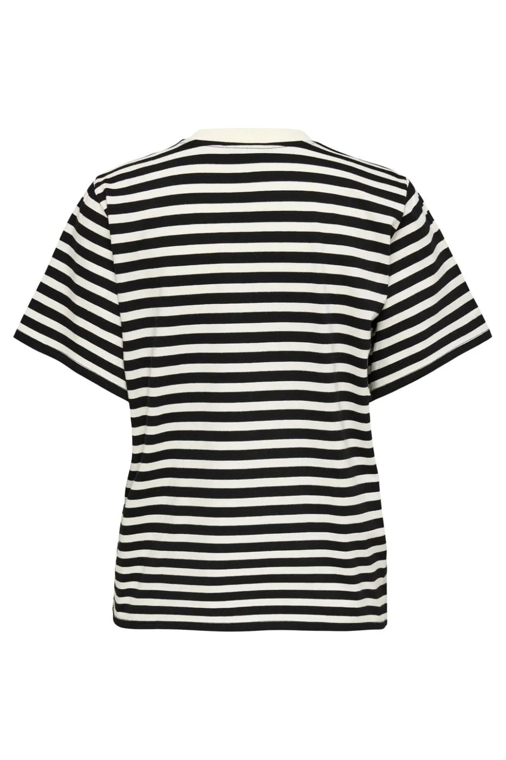 Stribet t-shirt fra Only i sort og hvid. T-shirten har en rund halsudskæring og korte ærmer med en regular pasform, der giver god bevægelsesfrihed.