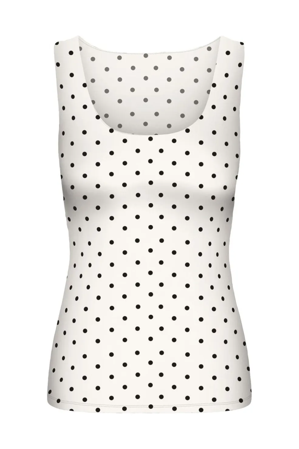 Ærmeløs top fra Only i hvid med sorte prikker. Toppen har en vendbar funktion med to forskellige halsudskæringer og en regular fit-pasform, der giver god bevægelsesfrihed.