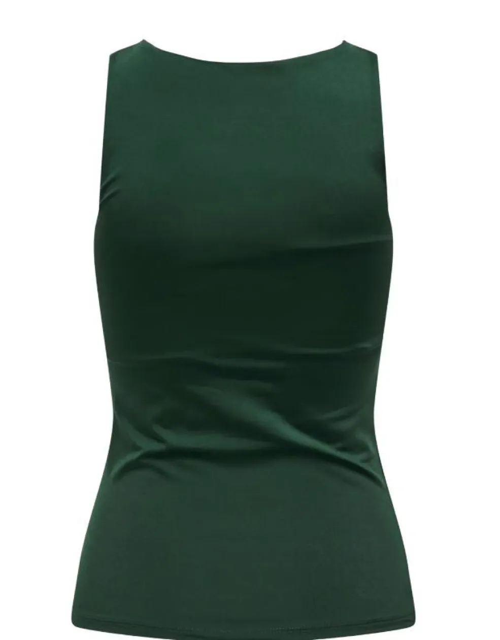 Ærmeløs top fra Only i mørk grøn nuance. Toppen har en O-hals og en tætsiddende regular fit-pasform.