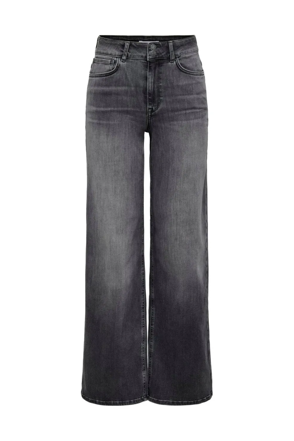 Jeans fra Only i washed black, en mørkegrå farve med vasket finish. Jeansene har høj talje, løs pasform og ankellængde.