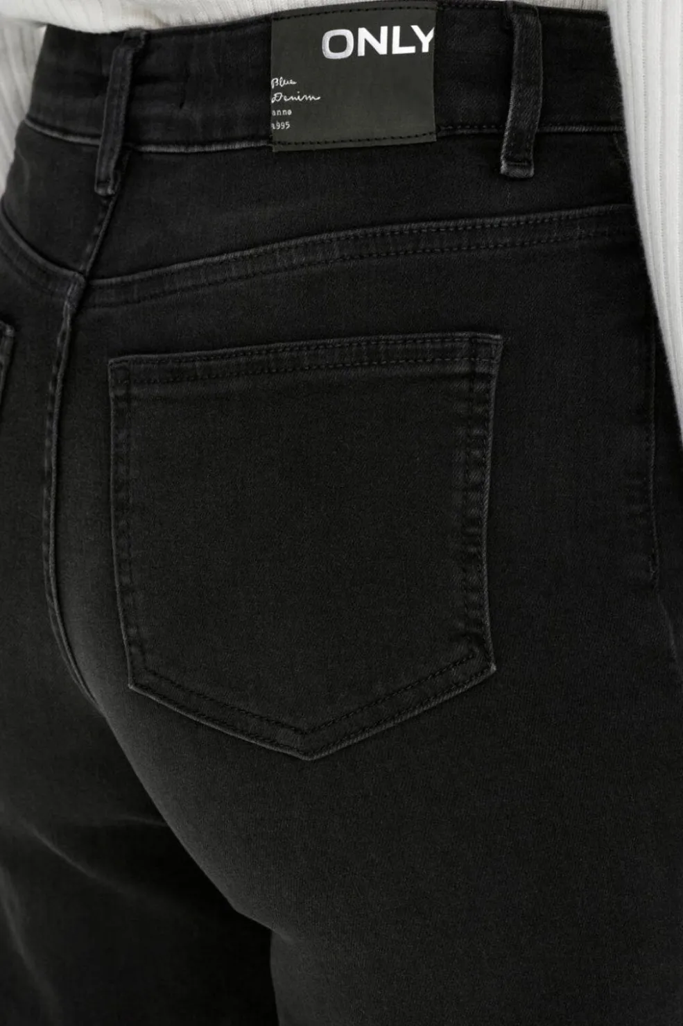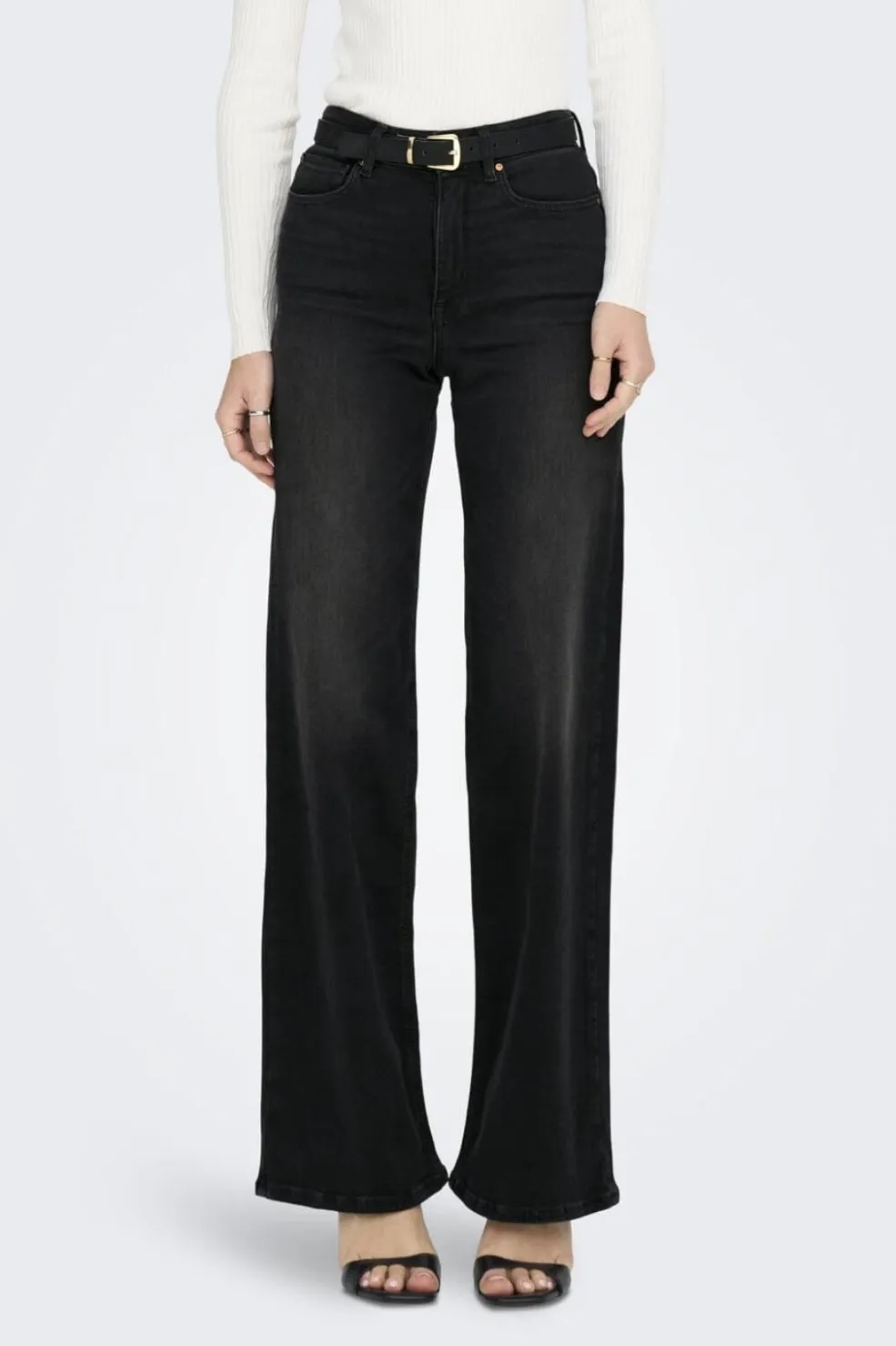 Sorte jeans med vide ben fra Only. Designet har høj talje og klassiske jeanslommer. De vide ben giver en løs og behagelig pasform.