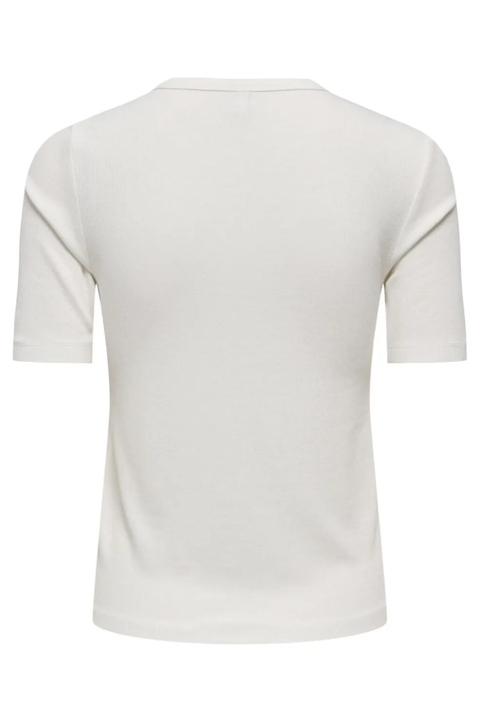 Kortærmet cardigan fra Only i cream-hvid. Cardiganen har en slim fit og er fremstillet i et blødt og strækbart materiale med rund hals og knaplukning foran.
