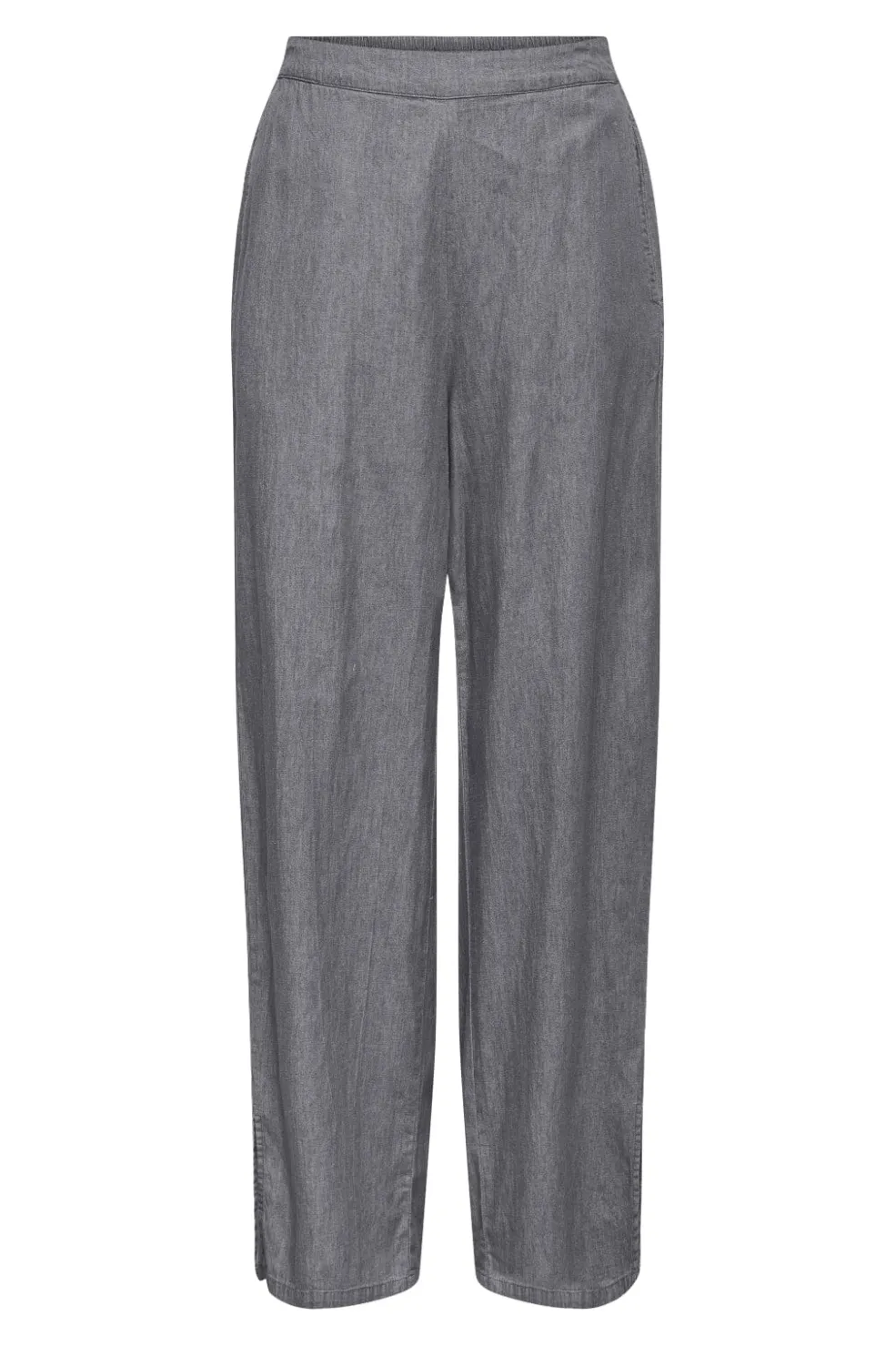 Grå denimbukser fra Only med sidelommer og elastisk talje. Bukserne har en regular fit og går til midt på læggen. Det åndbare bomuldsmateriale giver god komfort.
