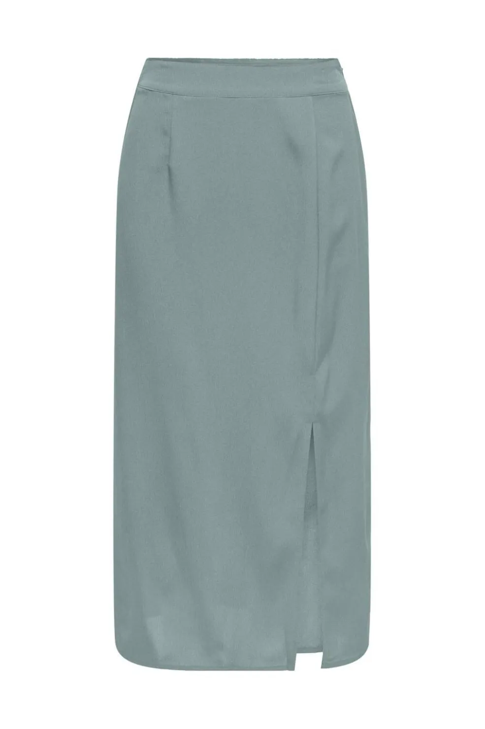 Knælang nederdel fra Only i farven Abyss. Den dæmpede grønne nuance har en slids i siden og en regular fit, der gør den nem at style til forskellige anledninger.