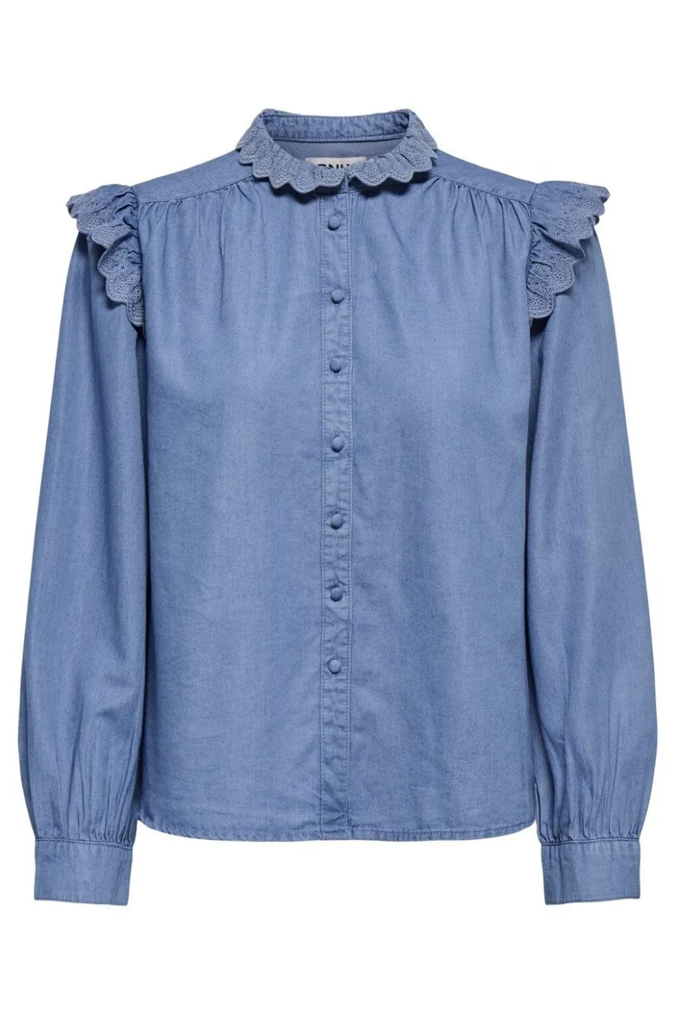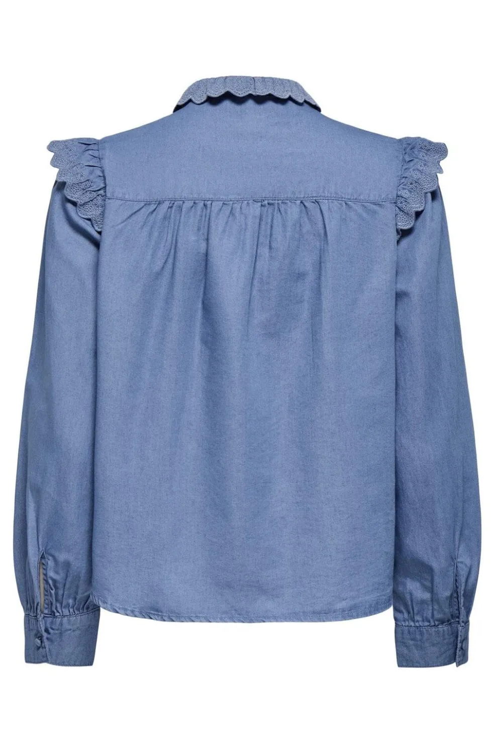 LDS PIPER L/S DNM SKJORTE MED BRODERI OG FLÆSEDETALJE