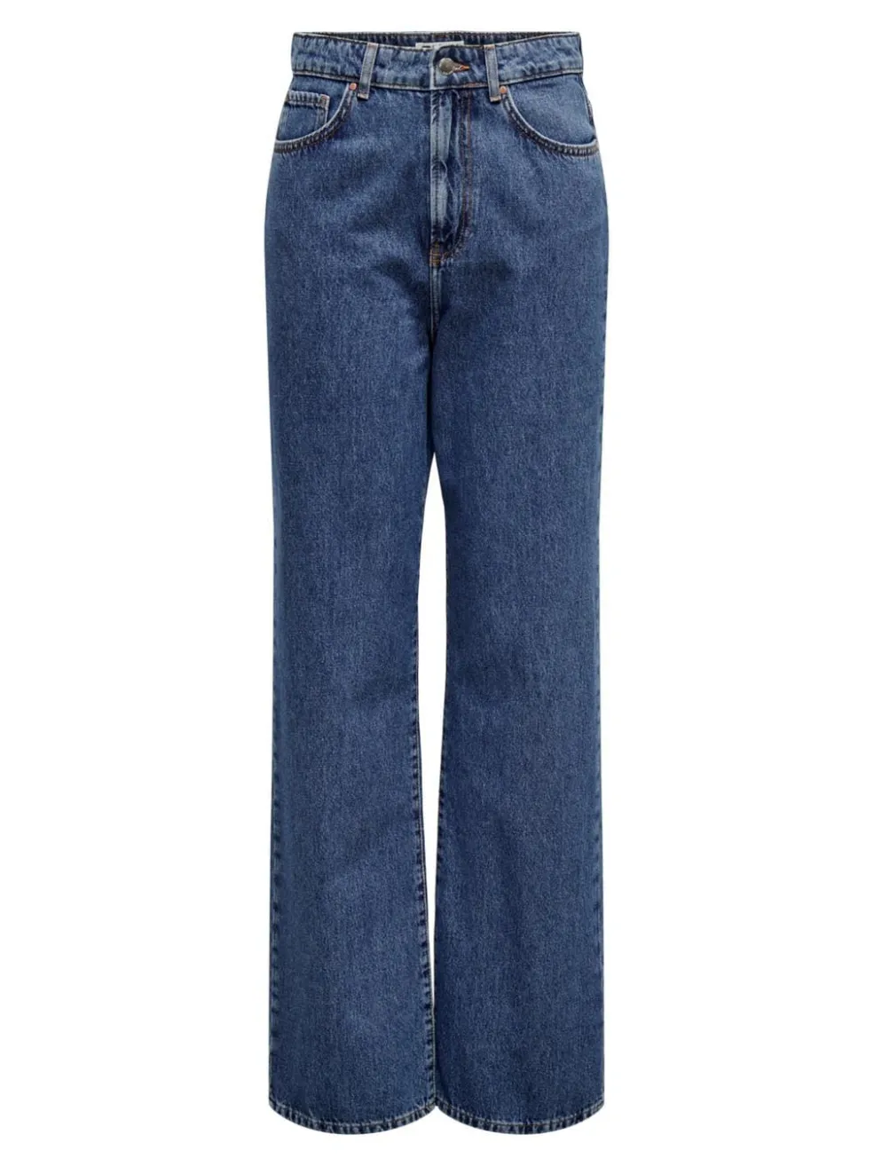 Jeans fra Only i medium blå denim. De har en løs pasform med lige, brede ben og almindelig taljehøjde. Bukserne er fremstillet i ensfarvet denim.