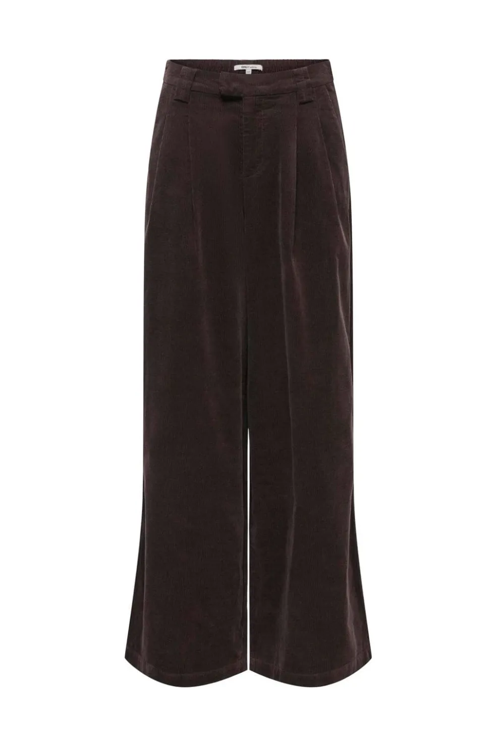 Brune fløjlsbukser fra Only med høj talje og løs pasform. Bukserne har læg foran og elastik i taljen bagpå, hvilket giver god bevægelsesfrihed.