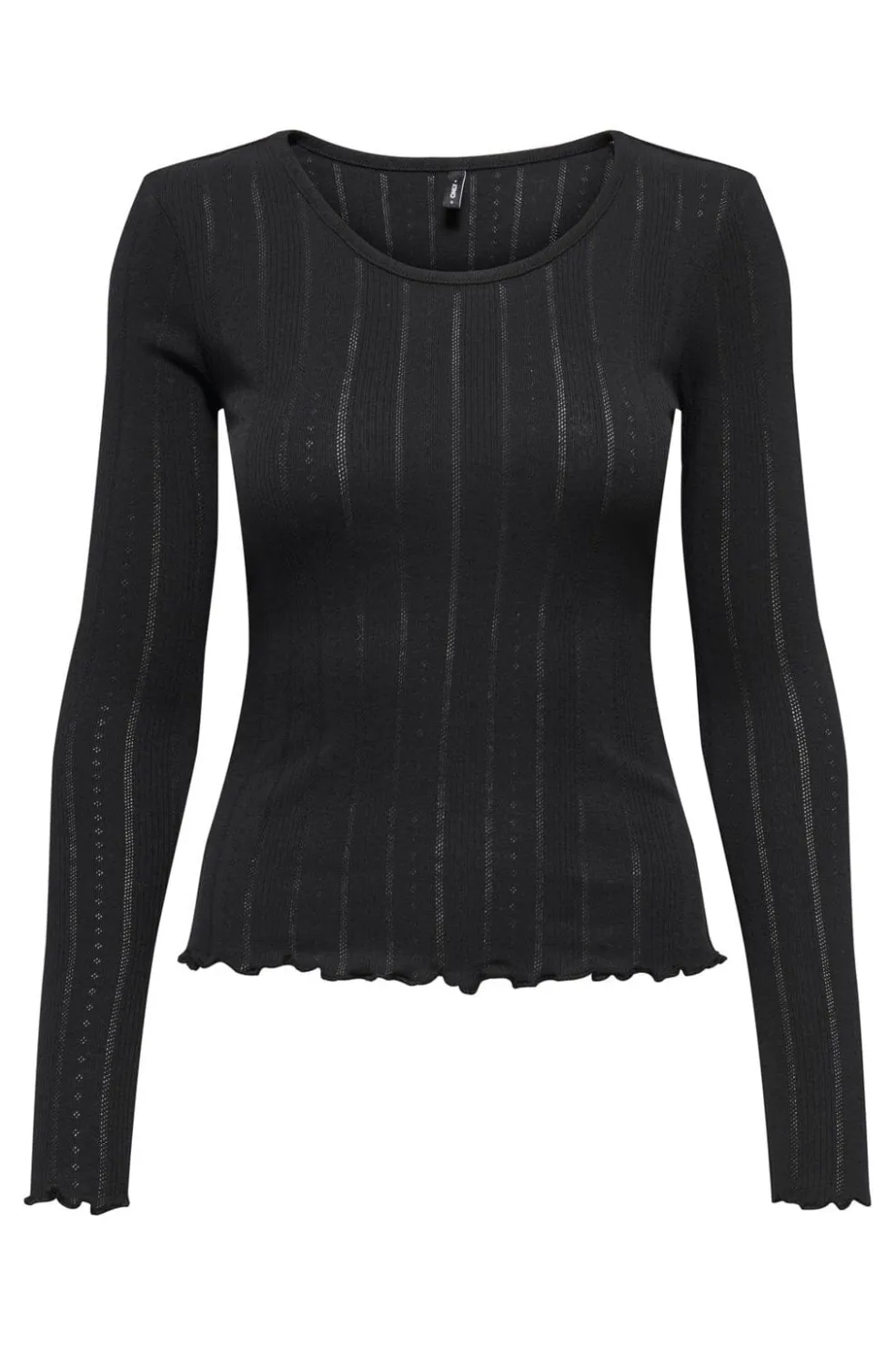 Sort langærmet top fra Only med rund halsudskæring og stribet mønster. Toppen har bølgede kanter ved ærmerne og forneden og kommer i en regular fit-pasform.