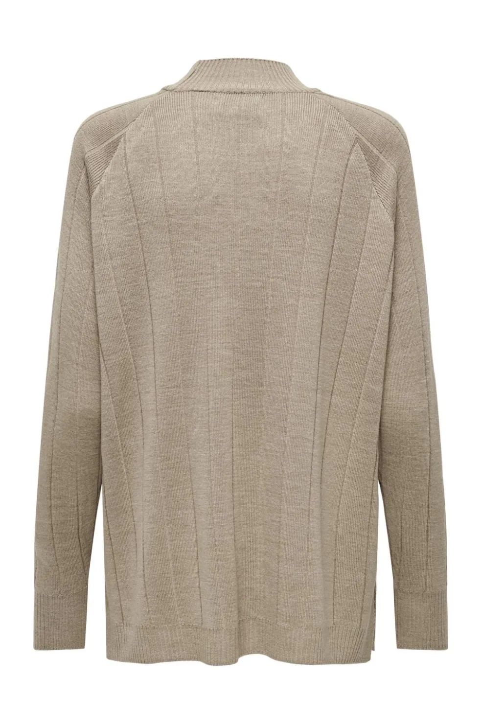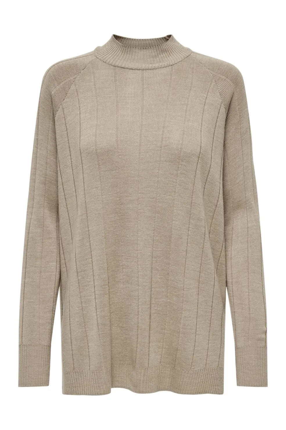 Striktrøje fra Only i en varm malt ball melange-nuance. Den høje hals og de lange ærmer giver en god kombination af varme og komfort.