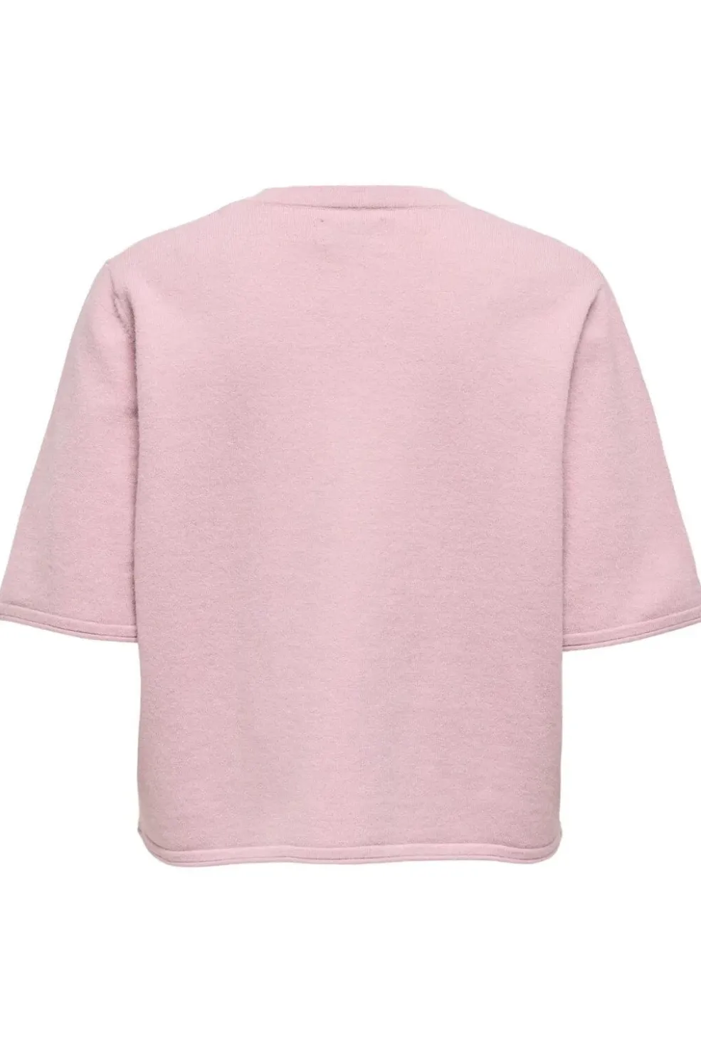 Kortærmet cardigan fra Only i en lys lilla nuance. Cardiganen har en rund halsudskæring og lukkes med knapper hele vejen ned.