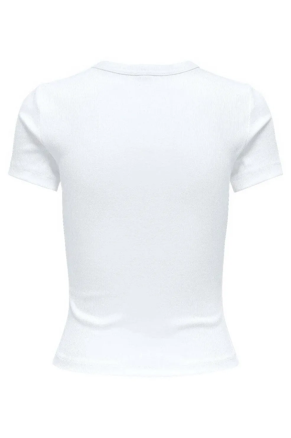Hvid t-shirt fra Only med rund halsudskæring og korte ærmer. En basic top i økologisk bomuld med en regular fit, der gør den praktisk til både hverdag og hjemmebrug.