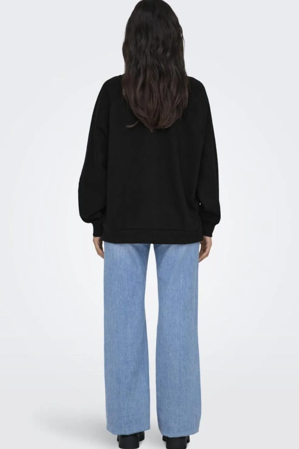 Sort sweatshirt fra Only med en oversize pasform. De lange ærmer har rhinsten-detaljer og en let puf-effekt ved manchetterne. Sweatshirten har en rund halsudskæring.