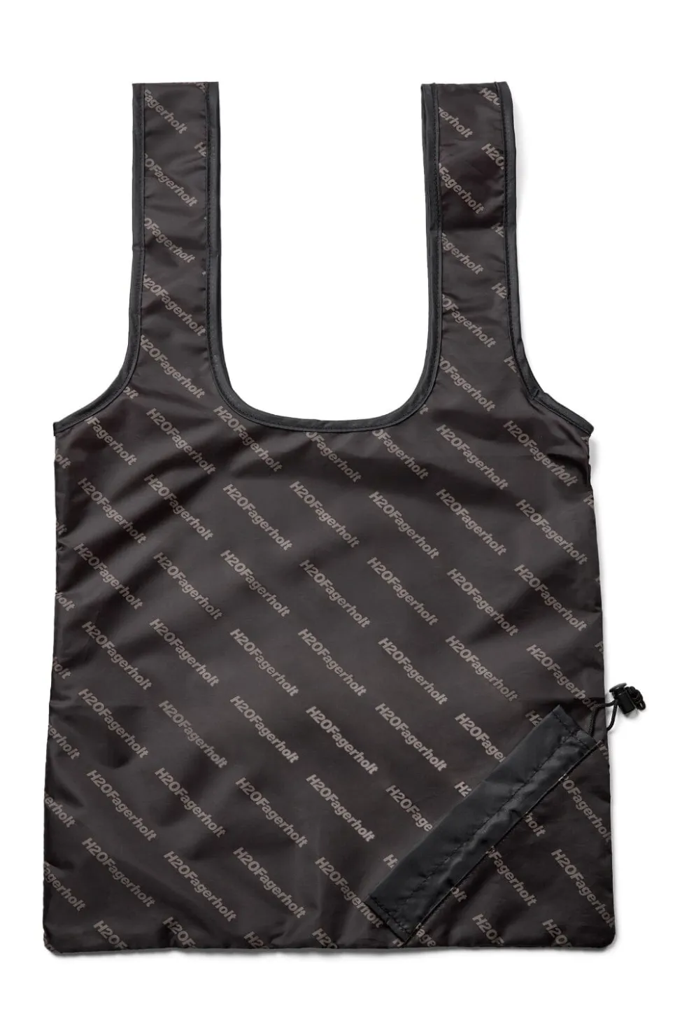 Sort tote bag fra H2O Fagerholt med et rummeligt indre. Tasken er lavet af polyester og har en praktisk snørelukning i toppen. Den kommer med en opbevaringspose til, når den ikke er i brug.