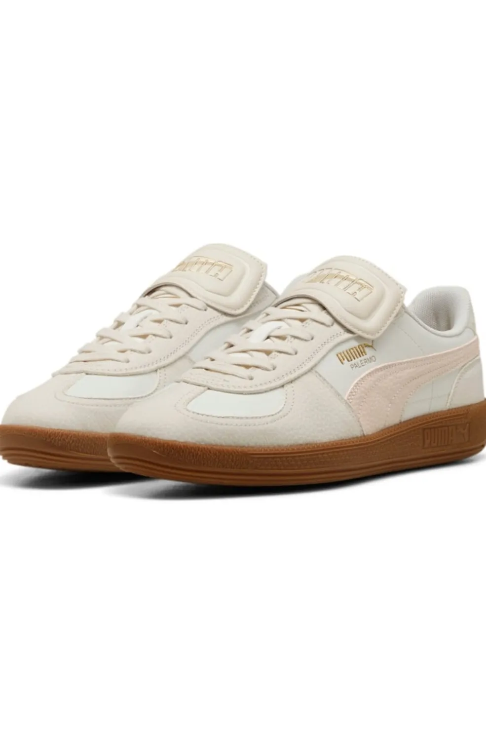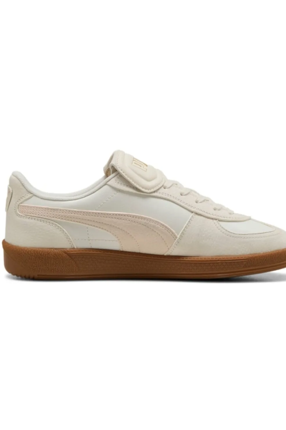 Hvid sneaker fra Puma med klassisk design. Kombinationen af læder og gummisål giver en robust sneaker med sporty detaljer og en cremefarvet finish.