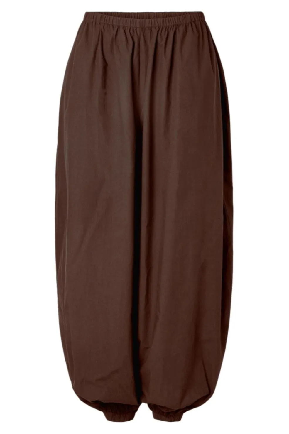 Ballonbukser fra Pieces i brun farve. Bukserne er lavet af 100 % bomuld og har elastik i taljen og ved anklerne.