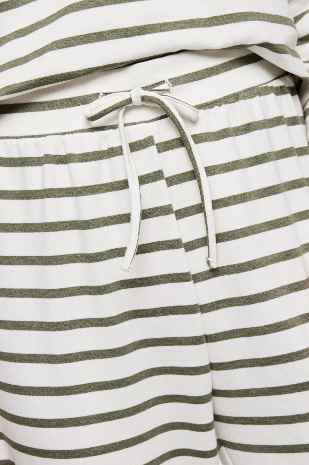 Stribede bukser fra Pieces i grøn og hvid. Bukserne har en afslappet pasform med elastisk talje og snøre til justering. Det stribede mønster giver et enkelt og stilrent udtryk.