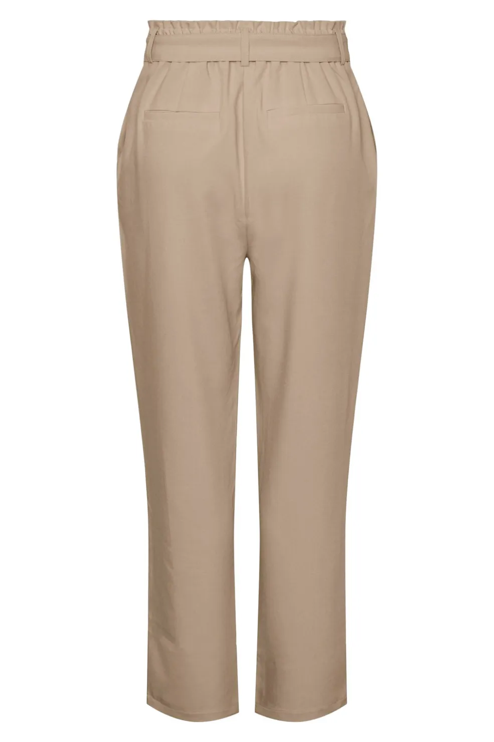 Lige bukser fra Pieces i en lys beige nuance. Bukserne har høj talje med paperbag-design og et bindebånd i taljen, der giver mulighed for at tilpasse pasformen.