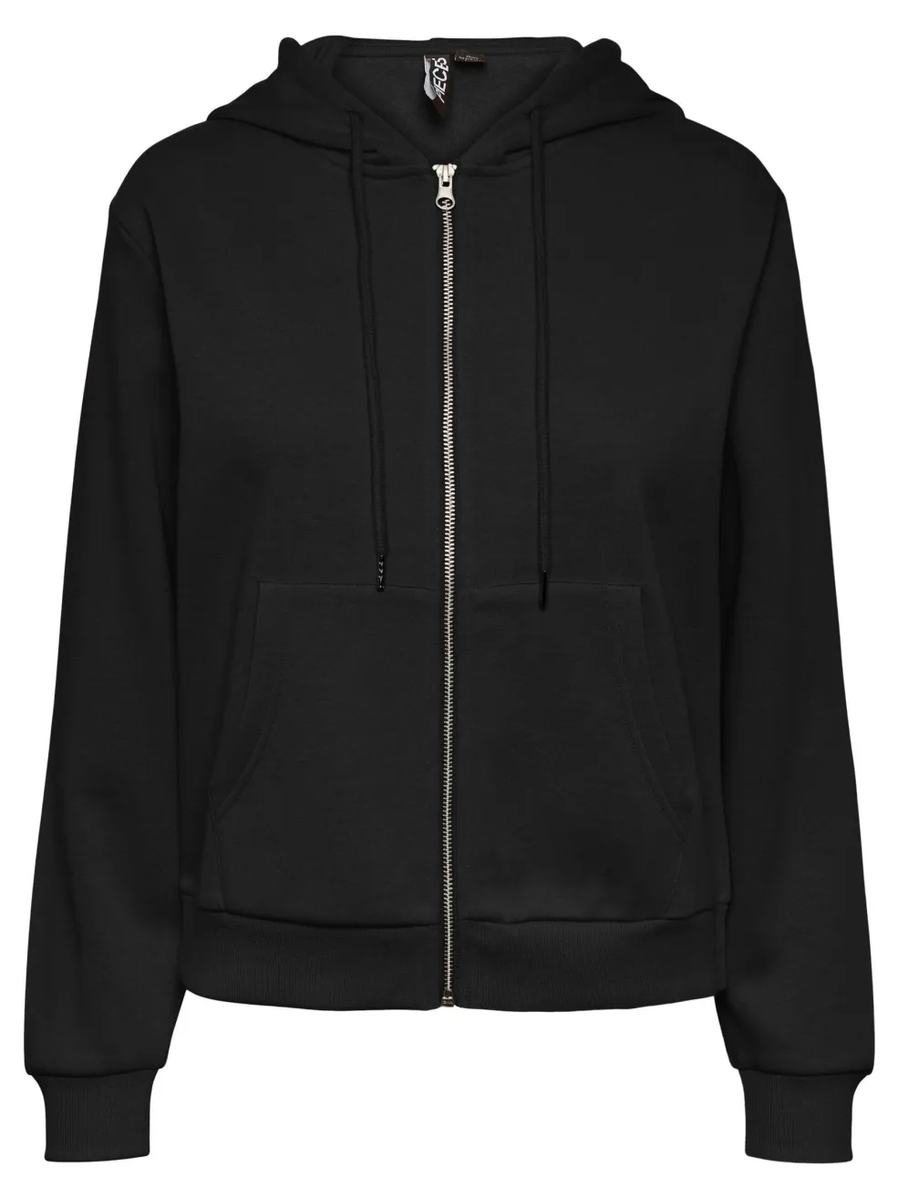 Sort hættetrøje fra Pieces med frontlynlås. Den har lange ærmer, kængurulomme og en hætte med snøre. Regular fit gør den behagelig at have på.