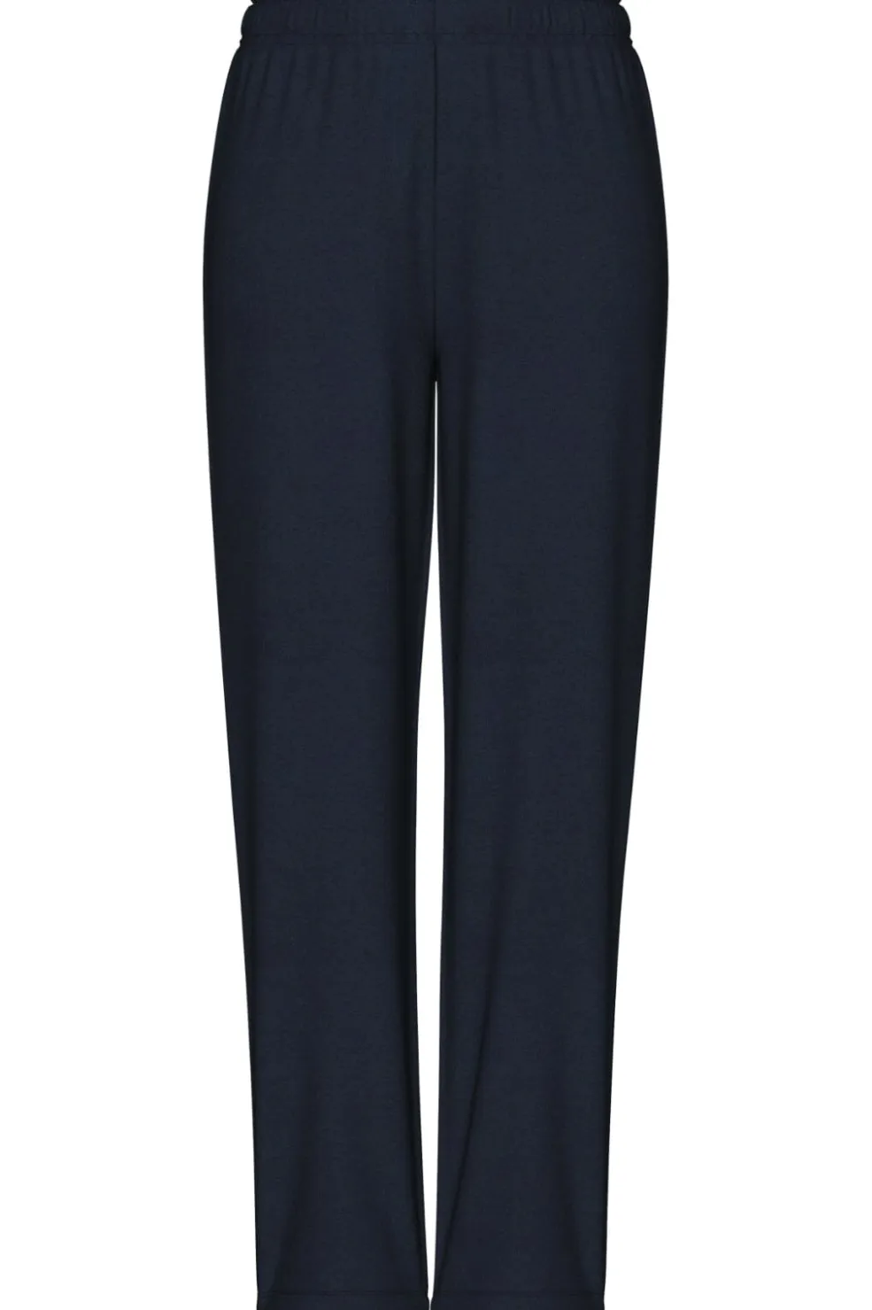 Mørkeblå sweatpants fra Pieces med høj talje og lige ben. Bukserne har sidelommer og en elastisk taljelinning. De er lavet af en blanding af genanvendt polyester og bomuld.