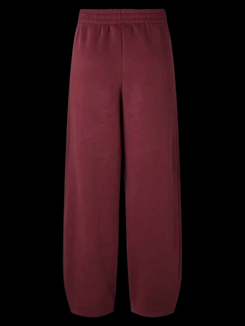 Barrel pants fra Pieces i en dyb rødbrun farve. Bukserne har en løs pasform med bred benstil og elastisk linning.