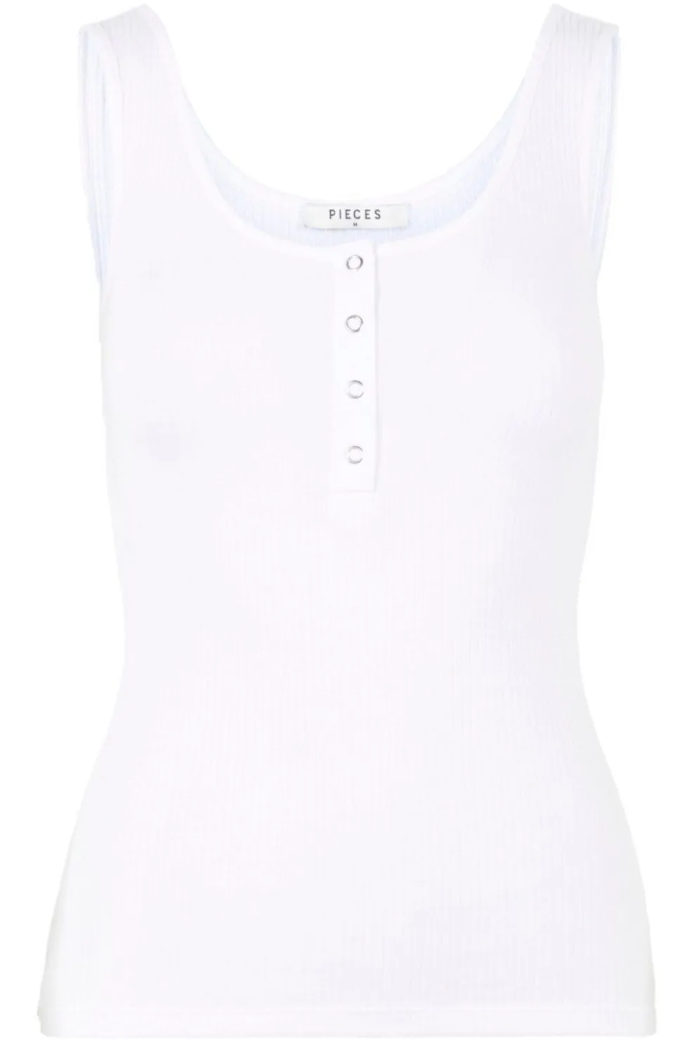 Hvid tanktop fra Pieces med løs pasform og ribbet tekstur. Den runde halsudskæring og de fire knapper foran giver toppen et rent og enkelt udtryk.