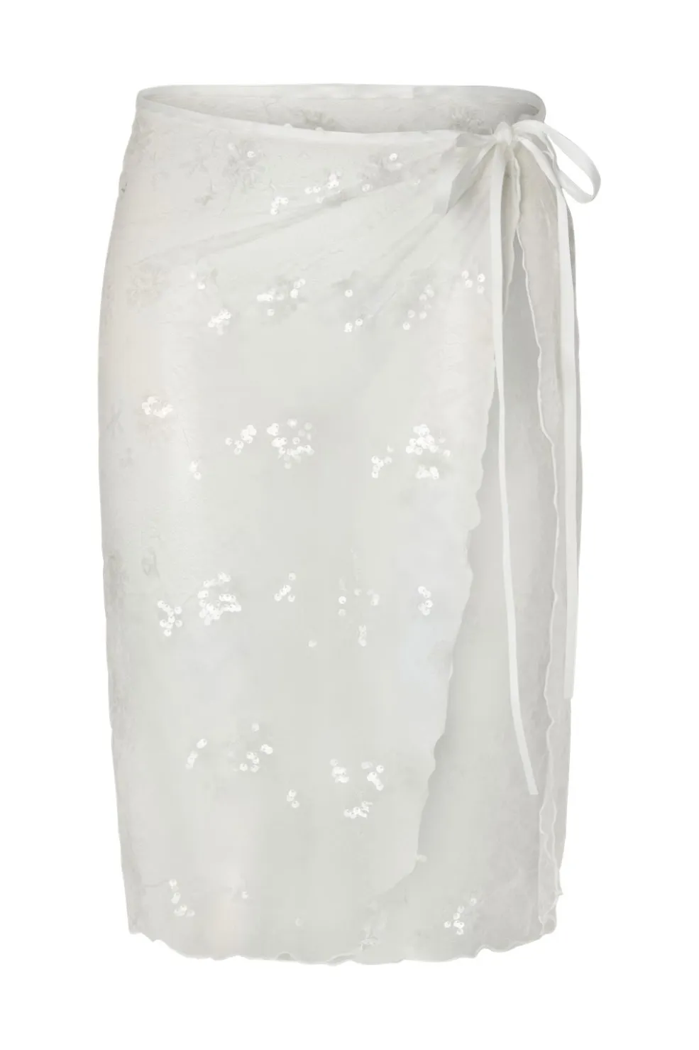 Lys hvid sarong fra Pieces med blomsterblonde-mønster. Sarongen er lavet af polyester og har et lige snit med dekorative detaljer.