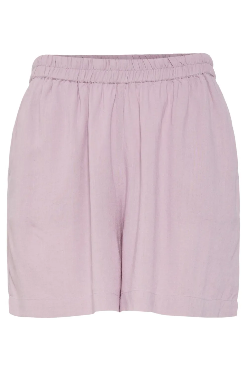 Lyserøde shorts fra Pieces i en blanding af viskose og hør. Shortsene har løs pasform og elastisk talje, der giver god bevægelsesfrihed.