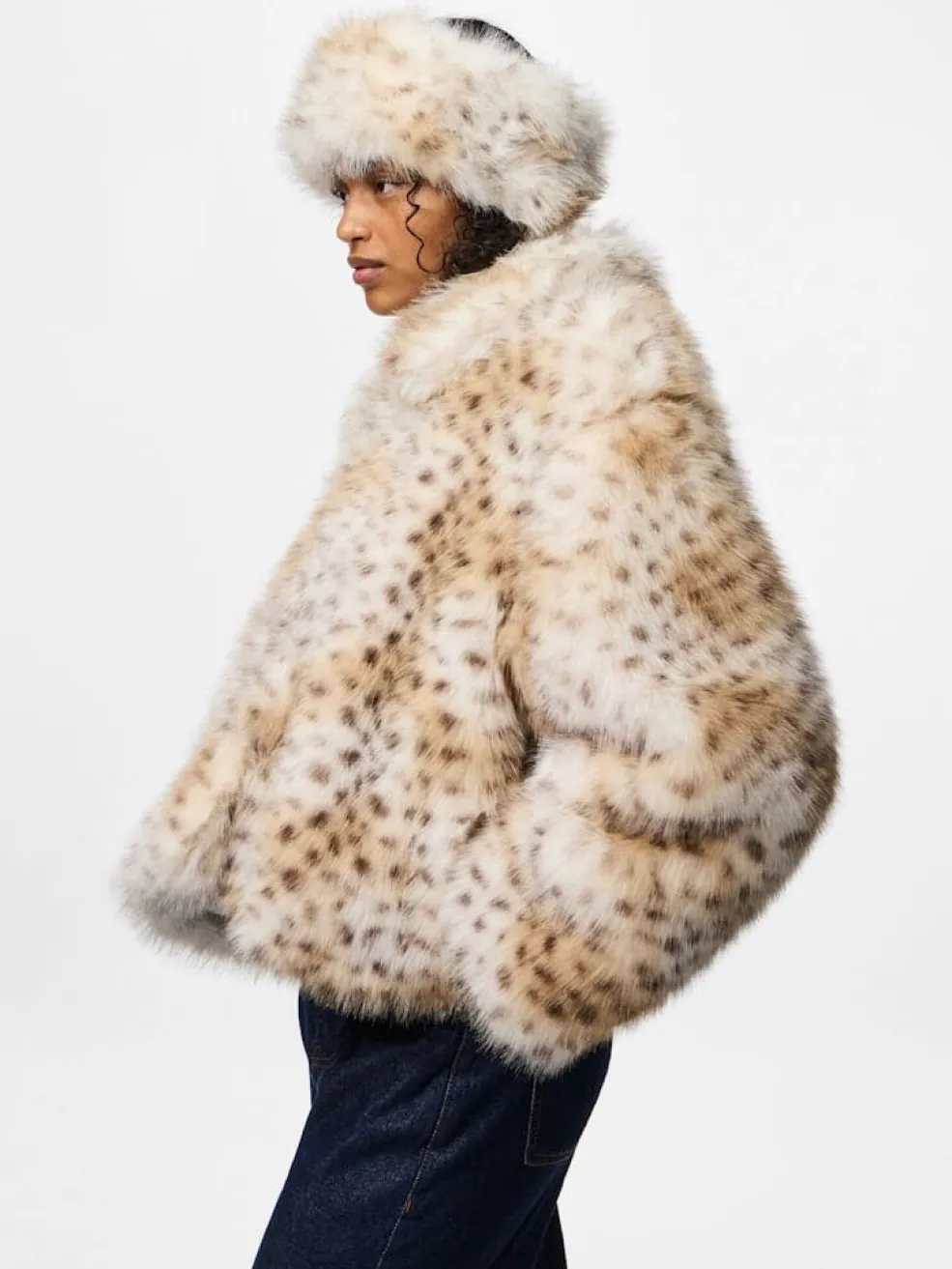 Fluffy hovedbånd fra Pieces med leopardmønster på en lys baggrund. Hovedbåndet har mørke pletter og en blød tekstur.