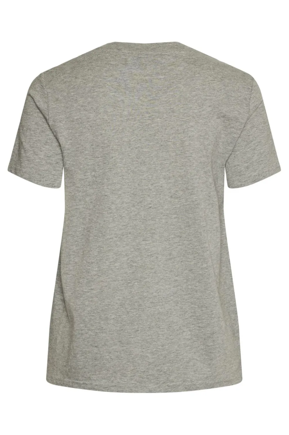 Lysegrå t-shirt fra Pieces i meleret bomuld. T-shirten har et sort tekstprint på forsiden med ordene HOLIDAY 2024 WORK LIFE BALANCE ENJOYABLE.