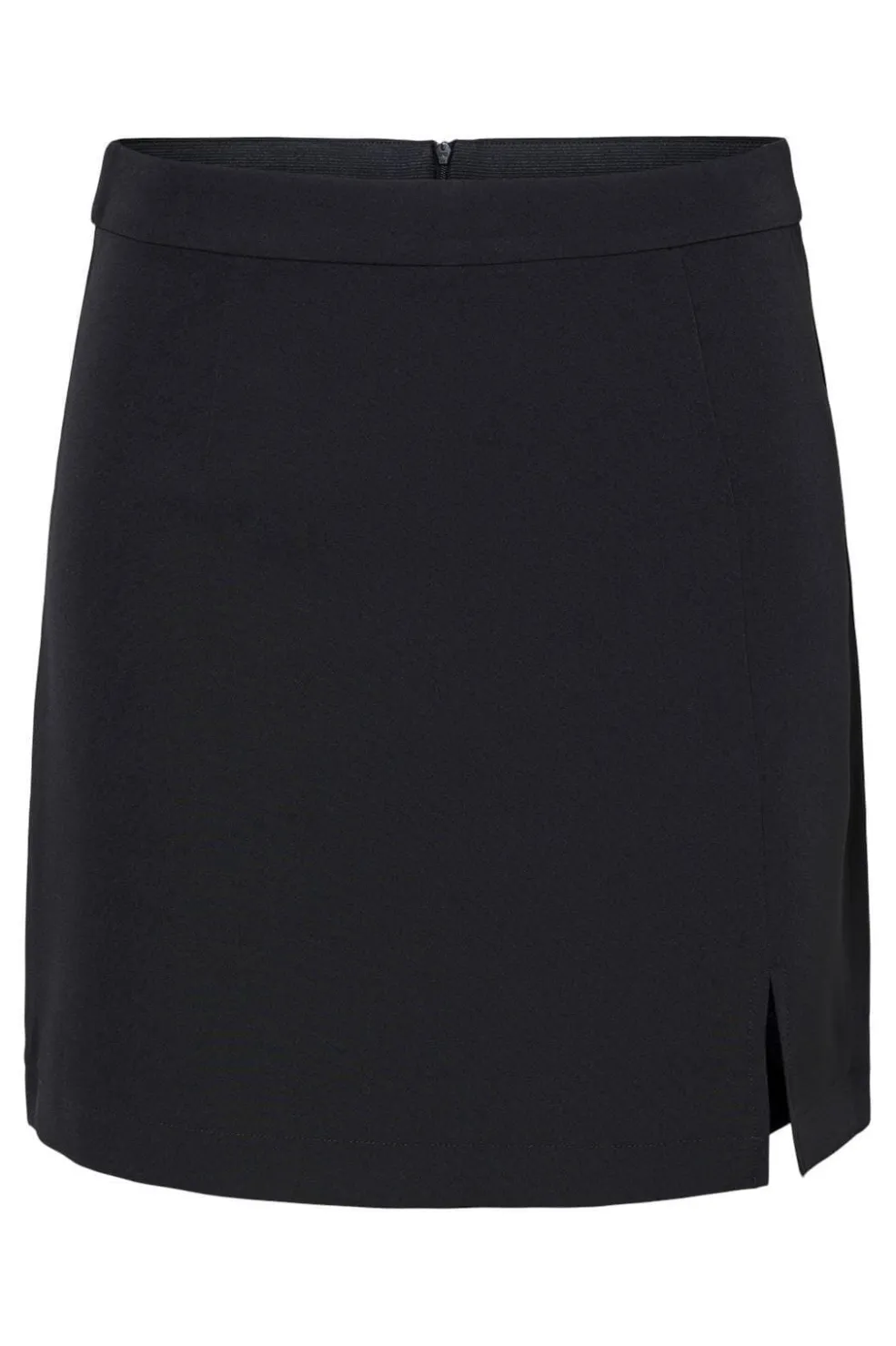 Sort nederdel fra Pieces med slids i højre side. Den korte længde og det enkle design gør den nem at style til forskellige anledninger.