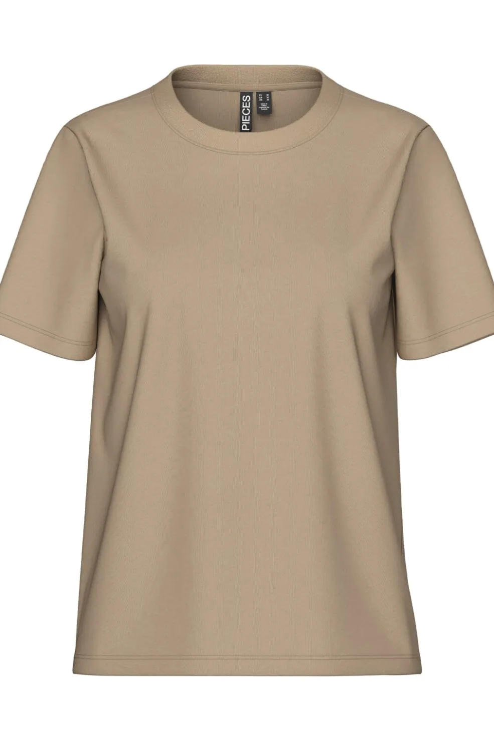 T-shirt fra Pieces i beige Silver Mink-nuance. Den er fremstillet af økologisk bomuld med en rund halsudskæring og korte ærmer.