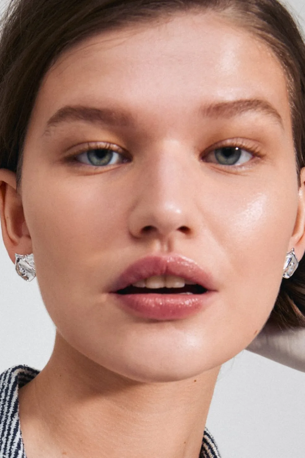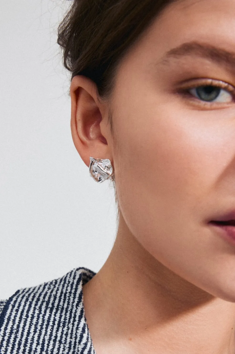 Sølvbelagte øreringe fra Pilgrim med en organisk form. Øreringene har en blank overflade og er fremstillet af genanvendte materialer.