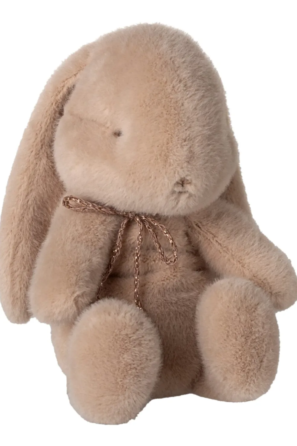 En lille plyskanin i pudderfarve fra Maileg. Kaninen har lange ører, der hænger ned, og et enkelt ansigt med broderede øjne og næse.