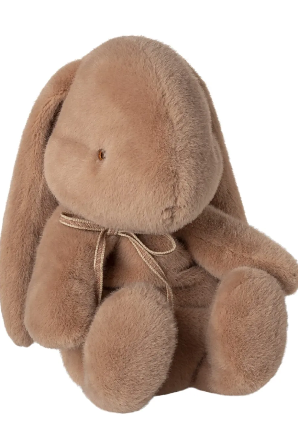 En plyskanin fra Maileg i lyserød farve. Kaninen er lavet af blødt plysstof og har en sløjfe om halsen.