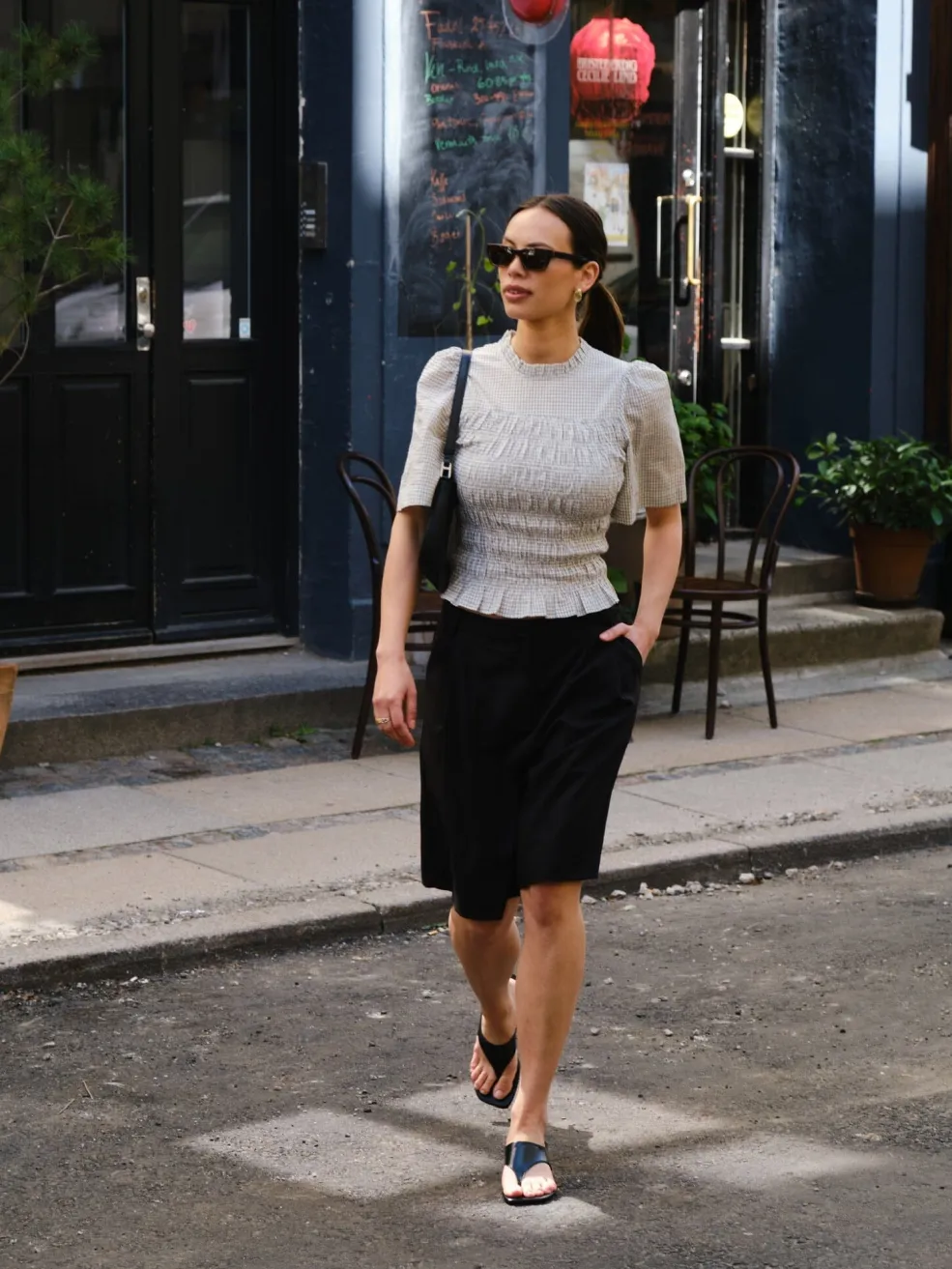Småternet bluse fra Neo Noir i creme. Designet med høj hals og smock-detaljer på kroppen. De løse 3/4-ærmer og den tætsiddende pasform skaber en fin kontrast.