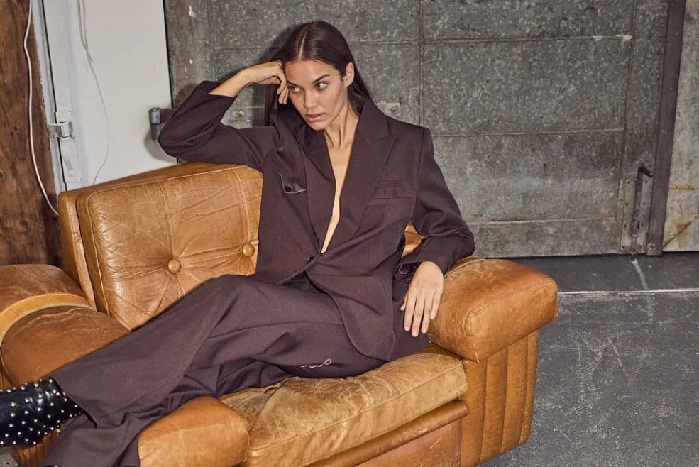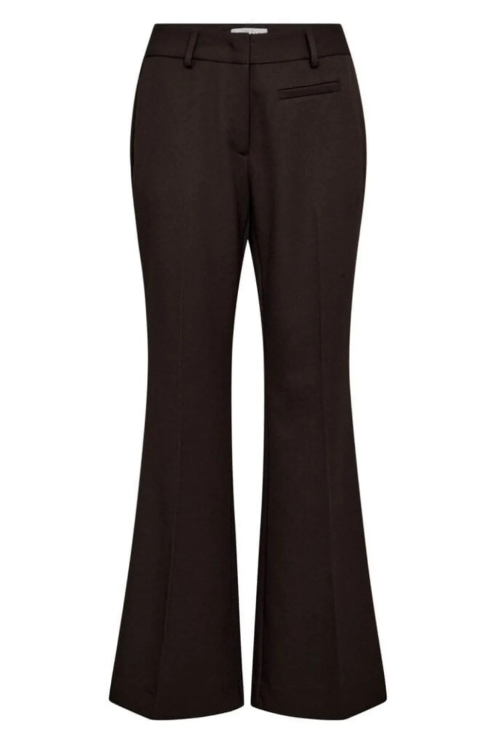 Bukser fra Haute L’Amitié i varm brun mocca-farve. Flared design med høj talje og bæltestropper. Materialet består af polyester og spandex.