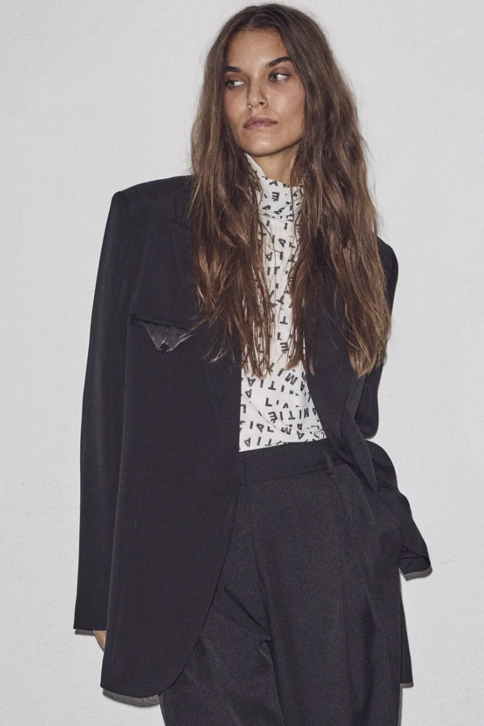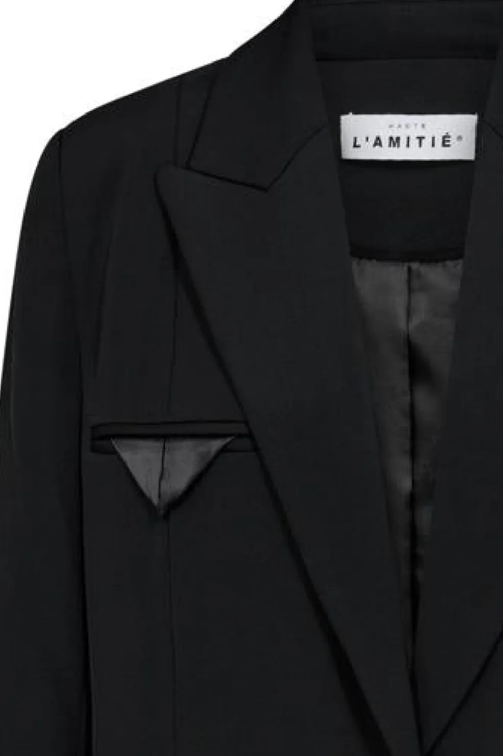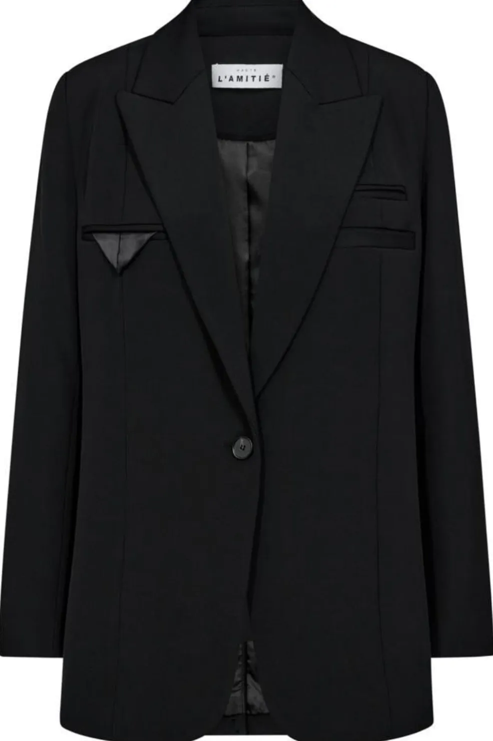 Sort blazer fra Haute L’Amitié, lavet af en blanding bestående af 95% polyester og 5% spandex. Blazeren har en løs pasform og en enkeltknappet lukning.