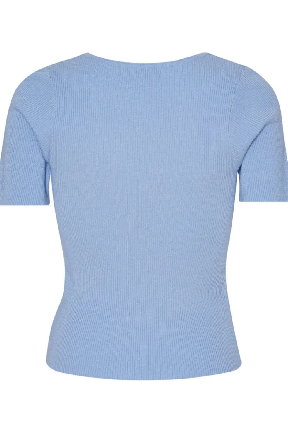 Lysblå ribstrikket top fra A-View med korte ærmer. Den tætsiddende pasform og den ribbede struktur giver toppen et rent og enkelt udtryk.
