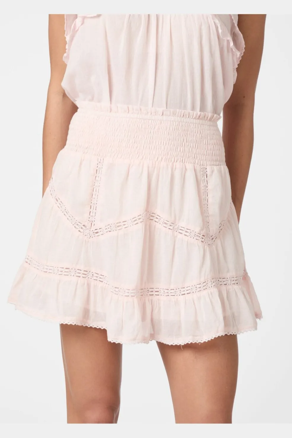 Lys pink nederdel fra Neo Noir med flæser og elastisk talje. Fremstillet i blød bomuldsvoile, der giver et let og luftigt udtryk.