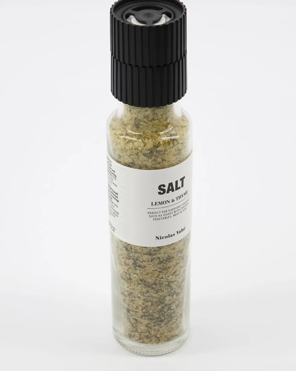 Materiale: 97% havssalt, timian/timjan, gurkemejerod, æterisk citronolje.